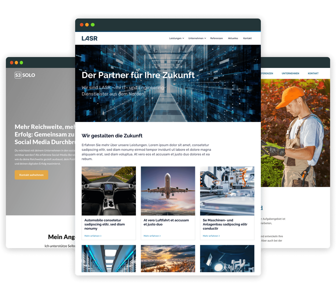Unser Premium Contao Theme für mittelständische Unternehmen, die sich klar und modern präsentieren wollen. LASR hat alles, was Unternehmen von einer Website erwarten.